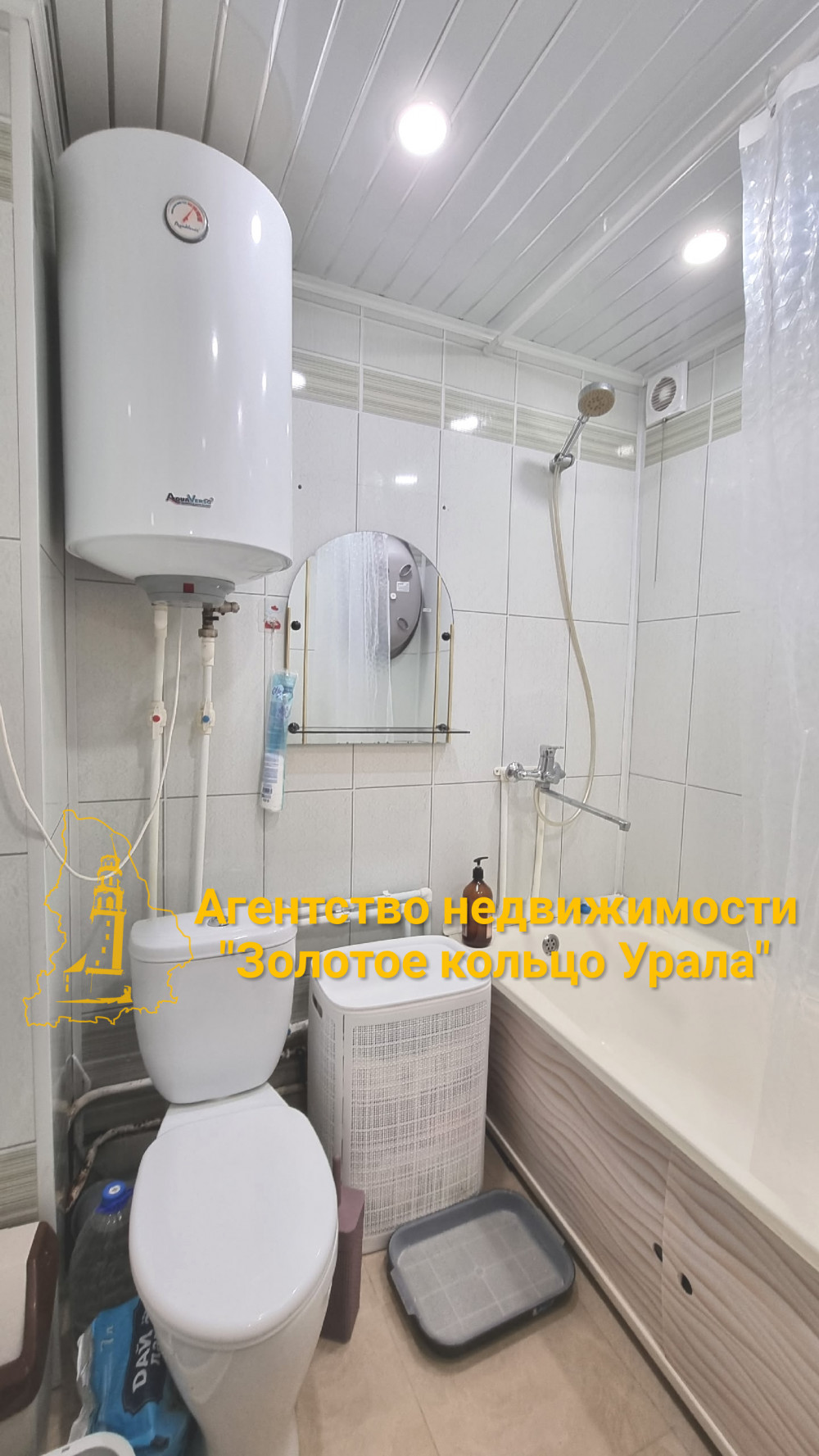Санузел совмещён, установлен водонагреватель на 60 л. и счётчики на воду, стены и пол в кафеле, сантехника в хорошем состоянии, установлен теплый пол!