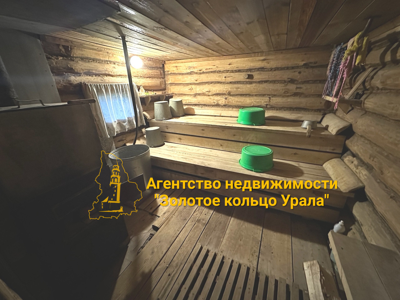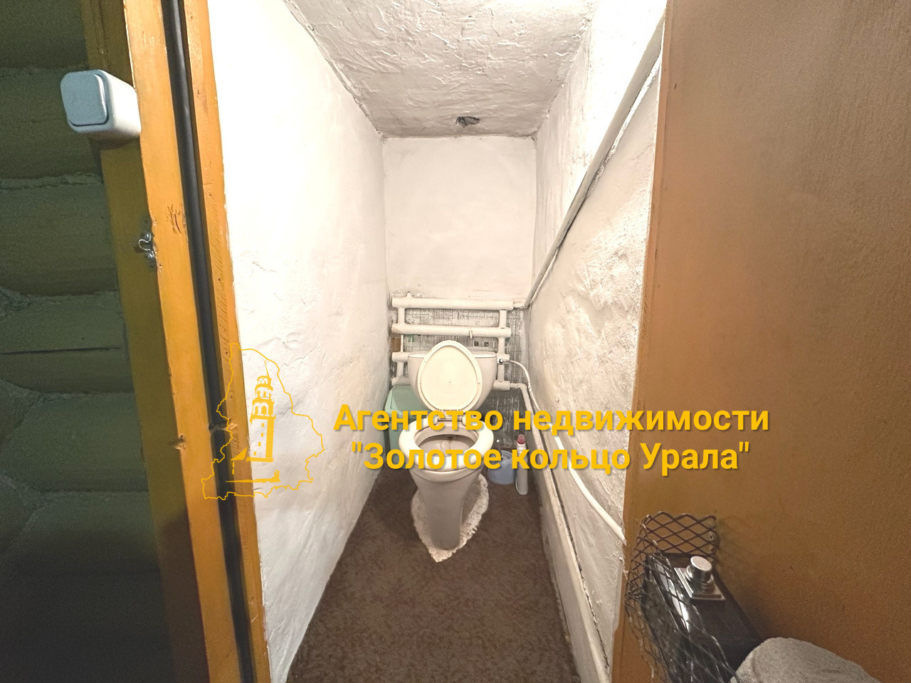 Дом выполнен из бревна. Крыша - шифер. Окна – деревянные.